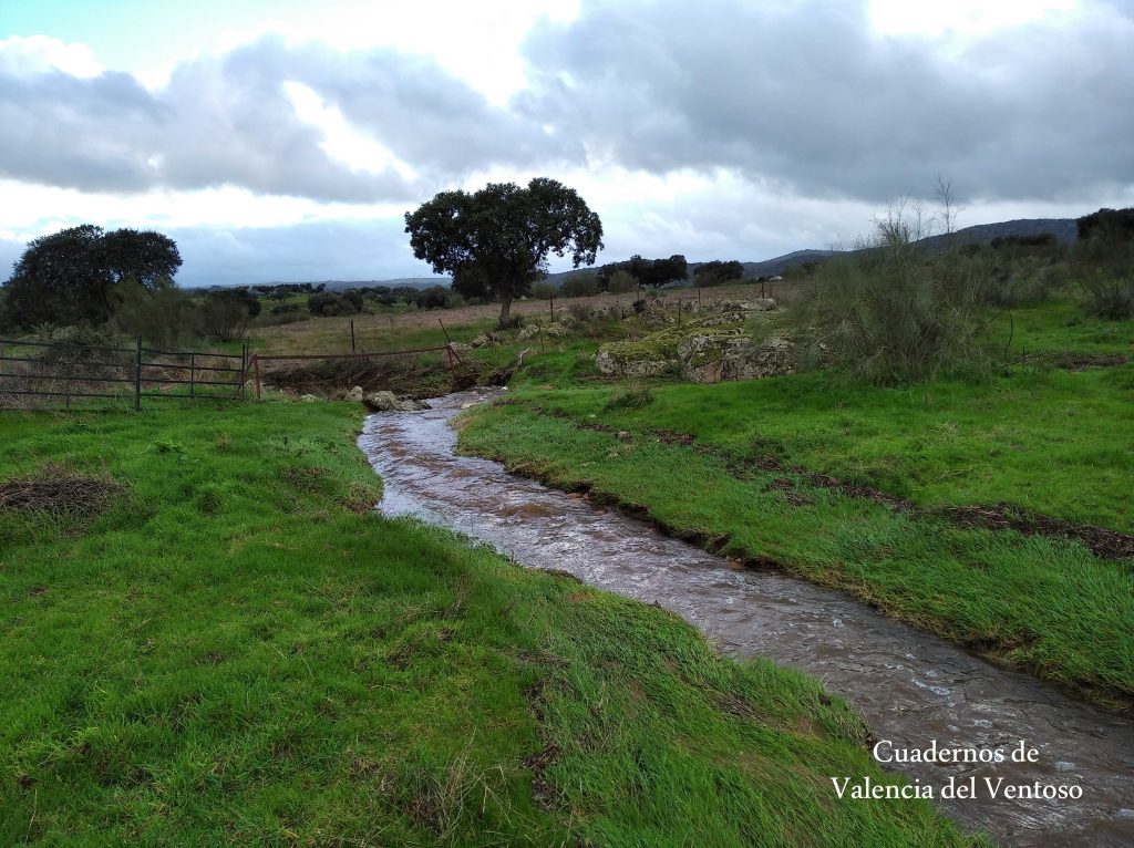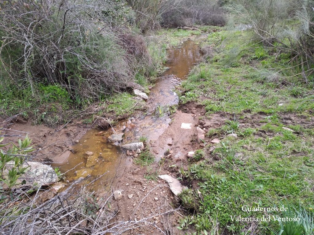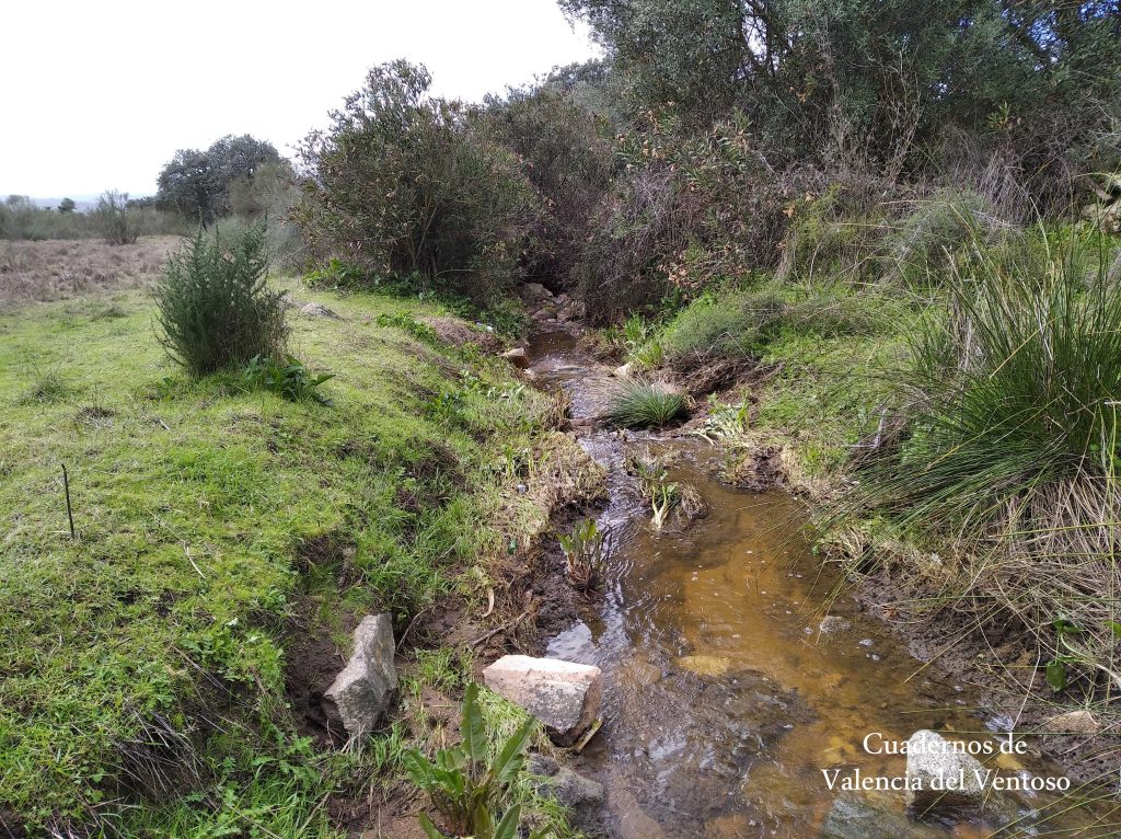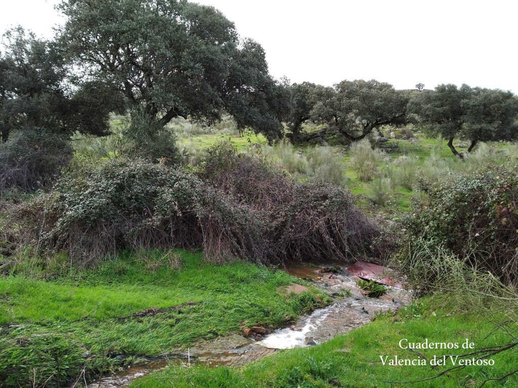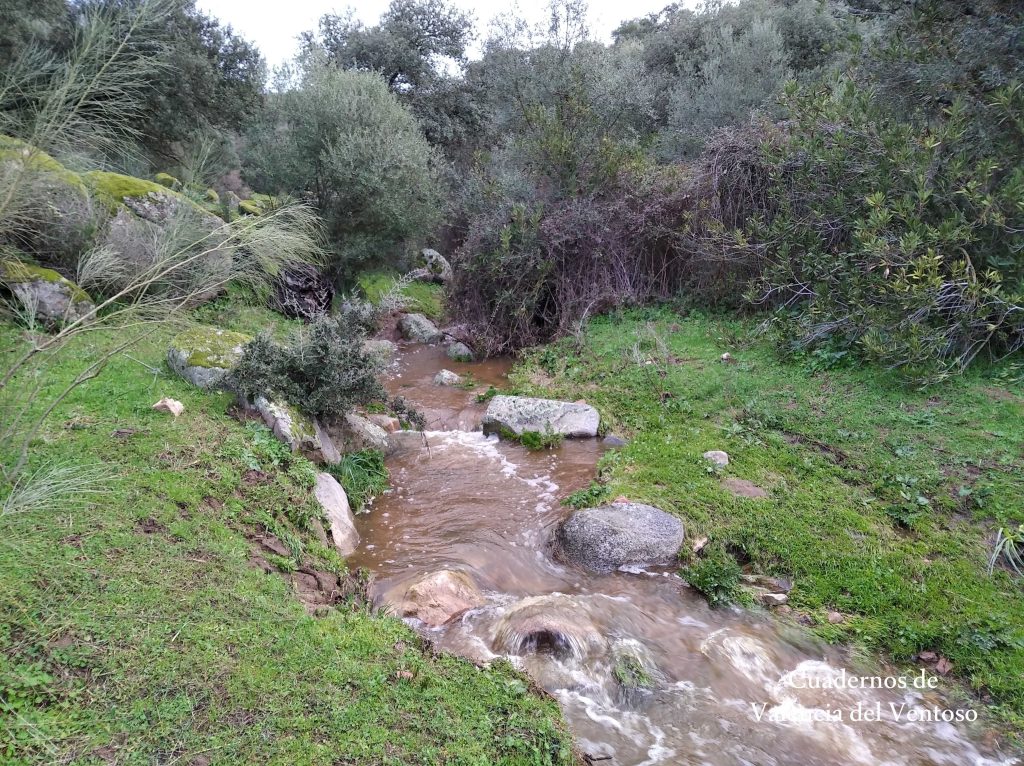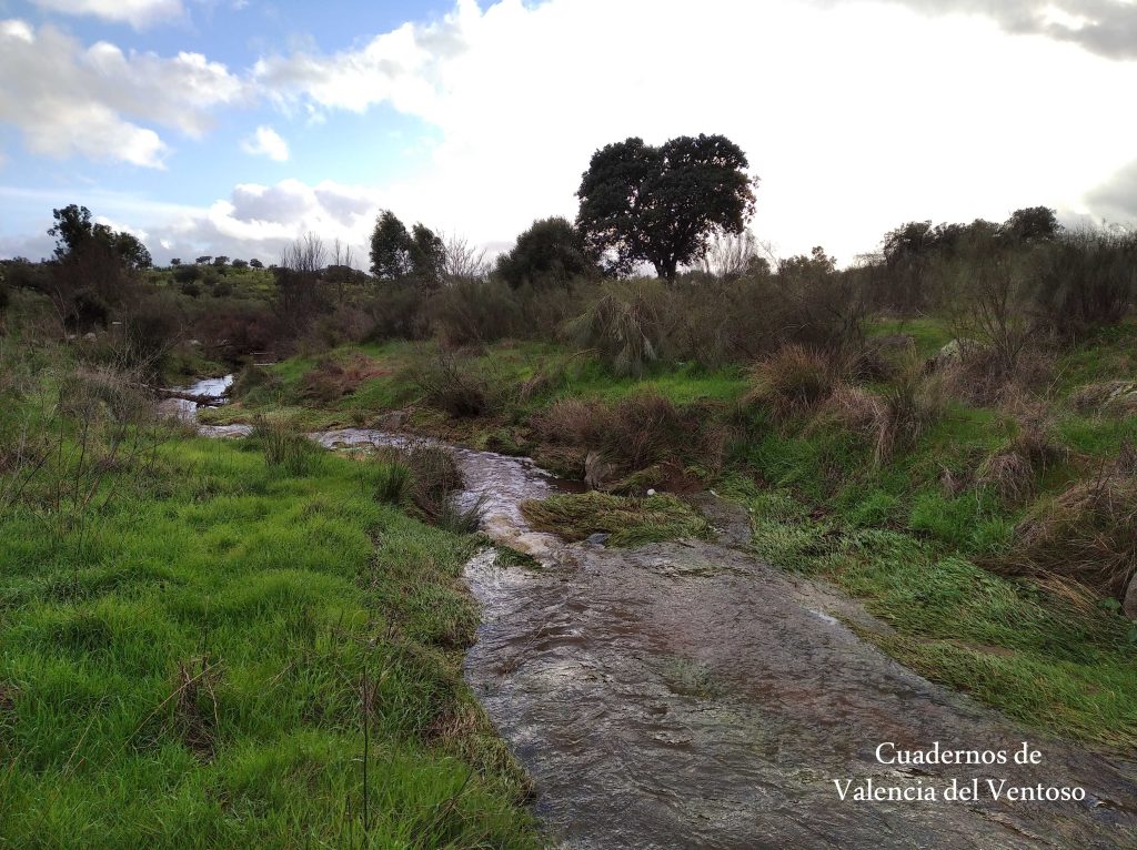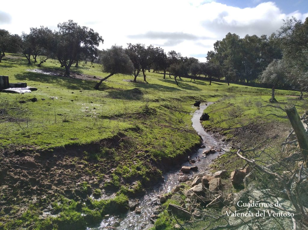 El arroyo, ya formado, trascurre de una forma placida por la dehesa, entre el territorio del Tiñoso y el de Doña Elvira.