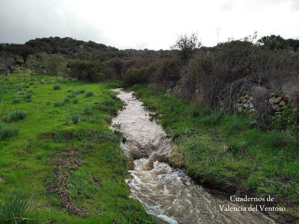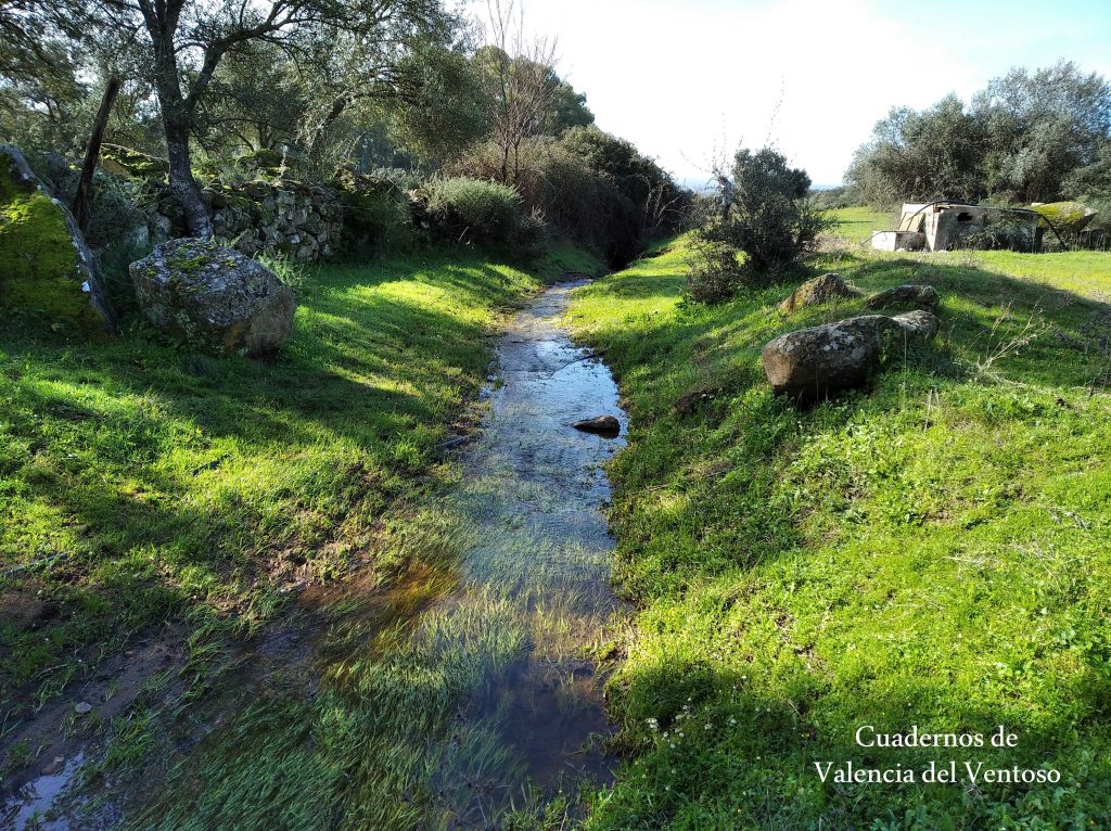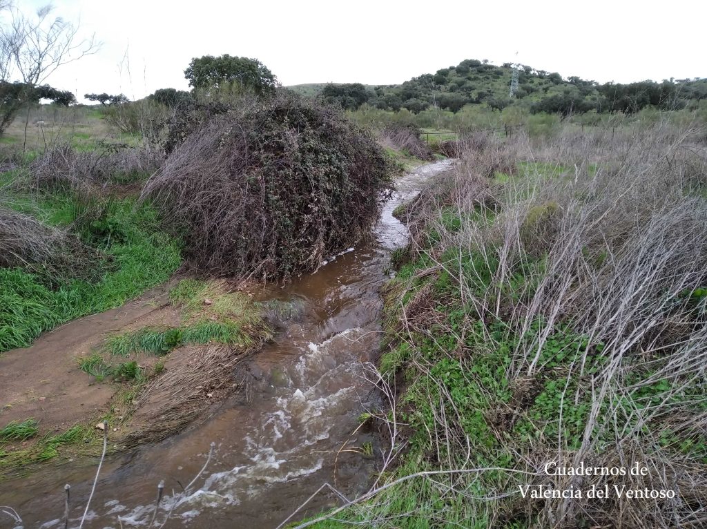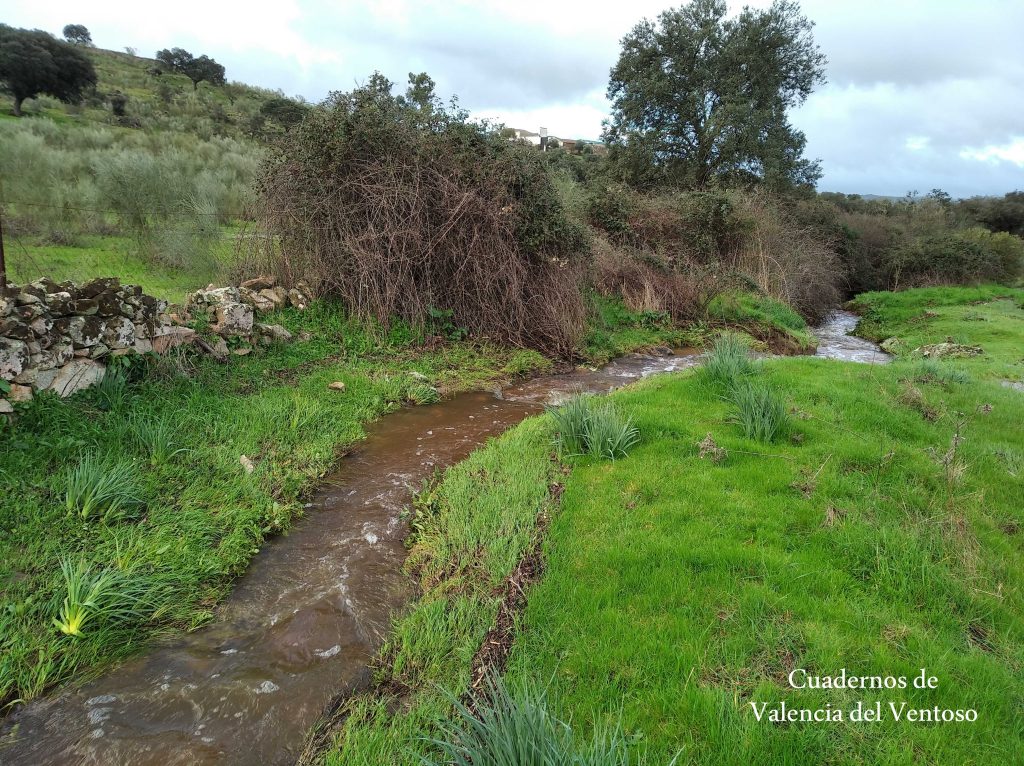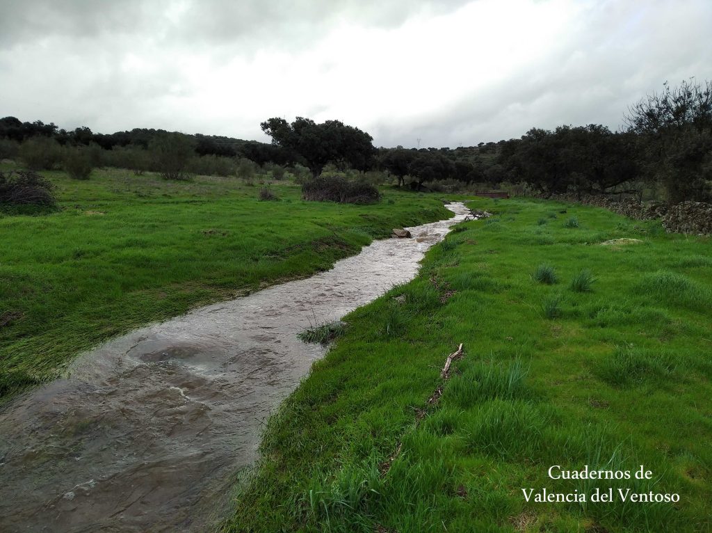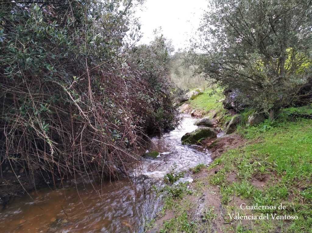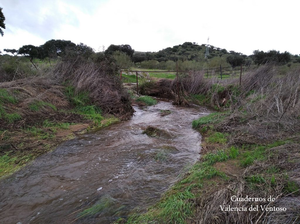 El arroyo, ya formado, trascurre de una forma placida por la dehesa, entre el territorio del Tiñoso y el de Doña Elvira.