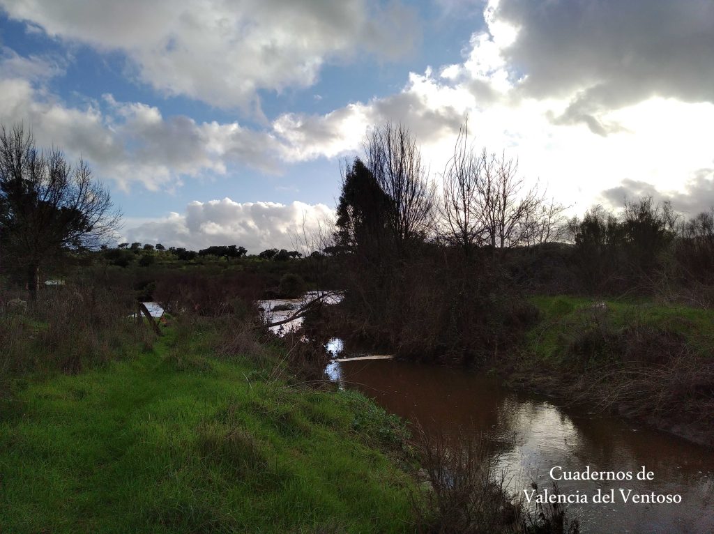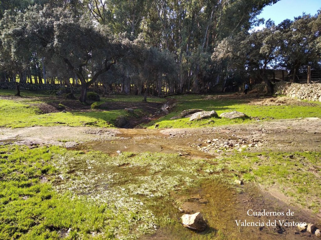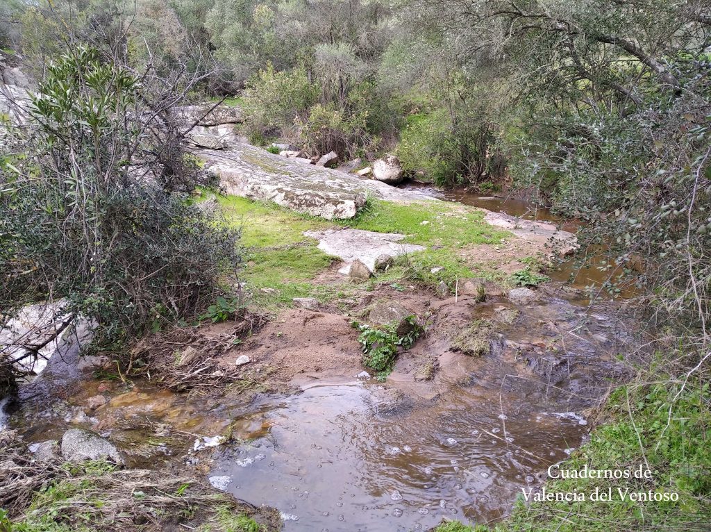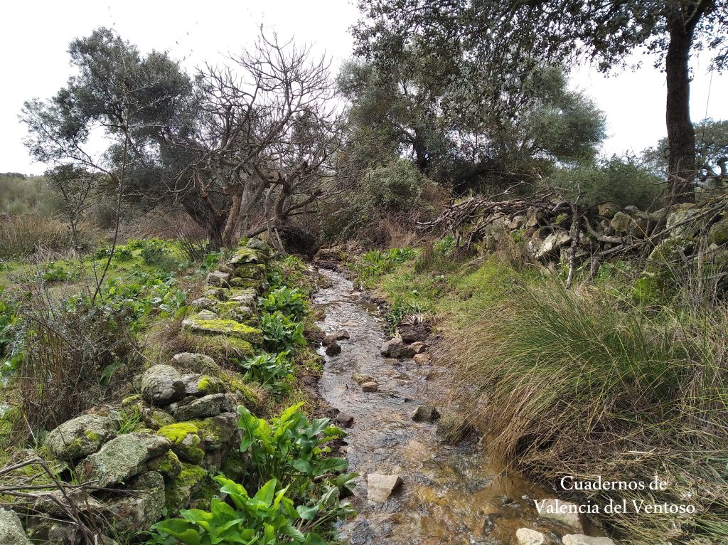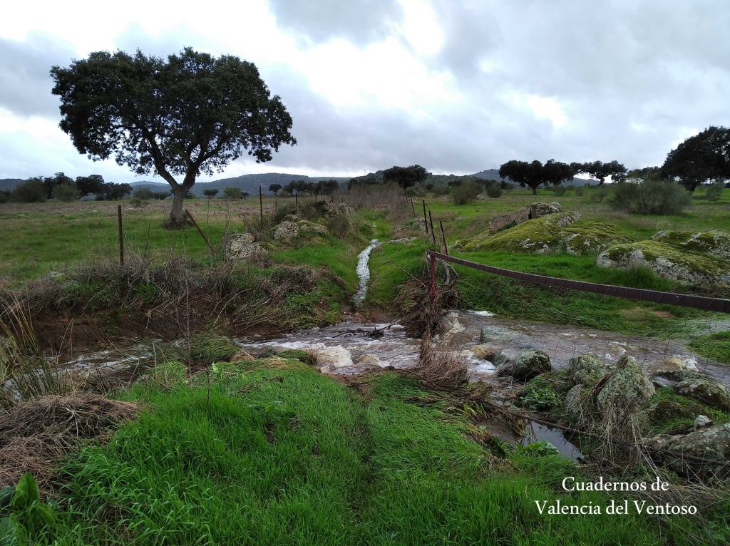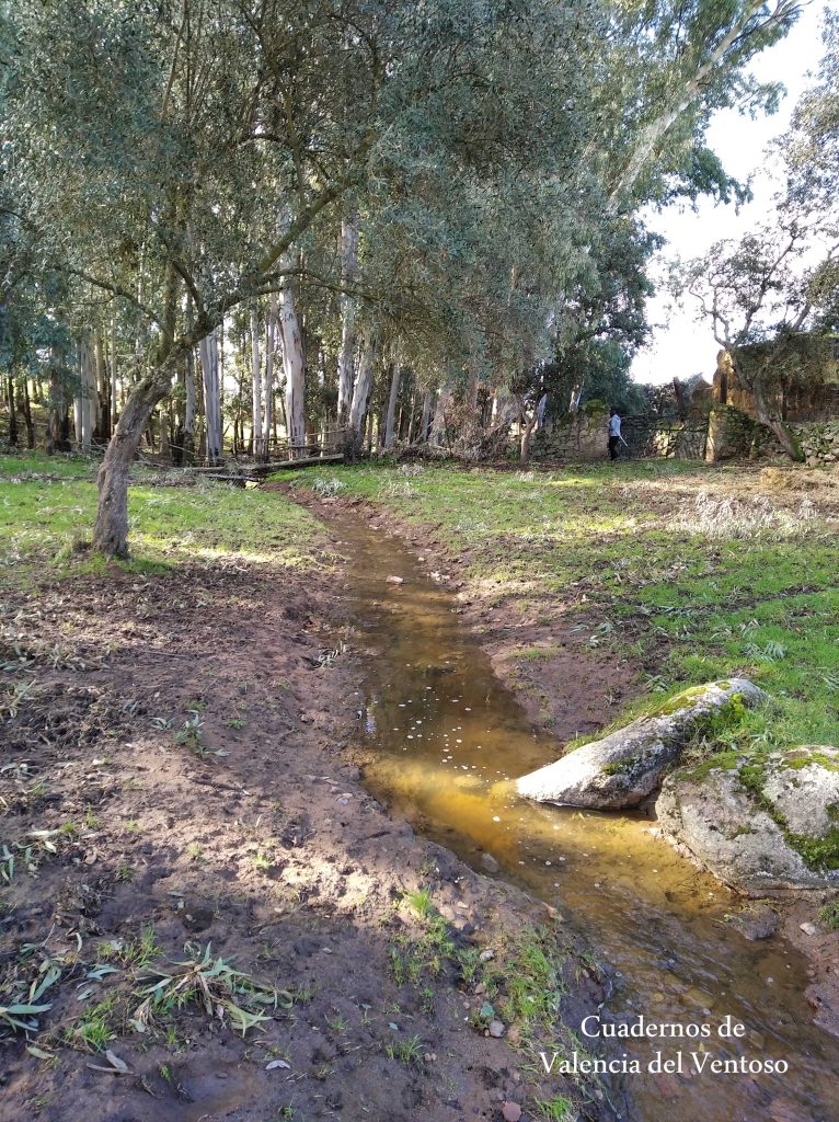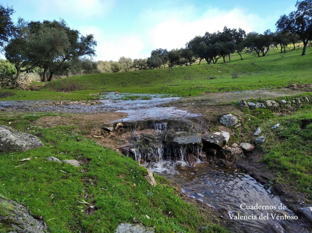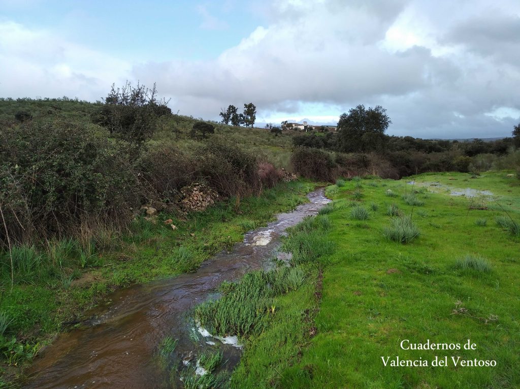 El arroyo, ya formado, trascurre de una forma placida por la dehesa, entre el territorio del Tiñoso y el de Doña Elvira.