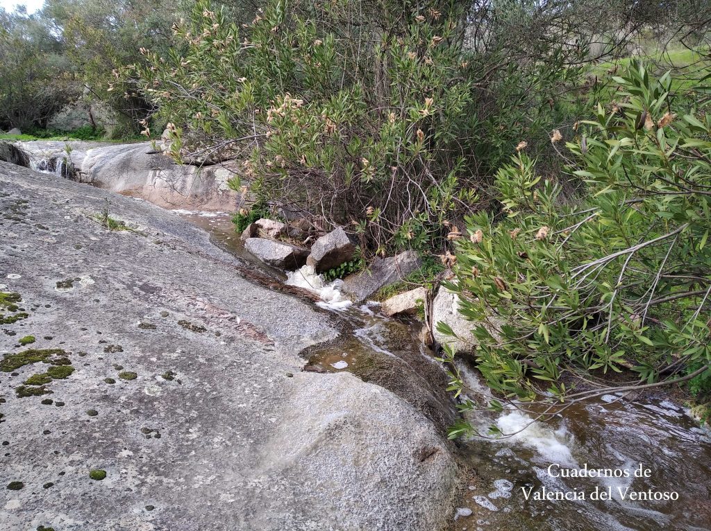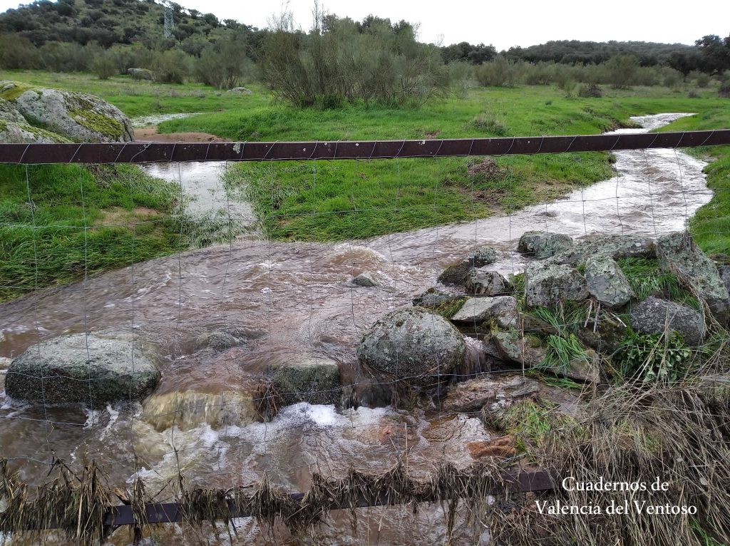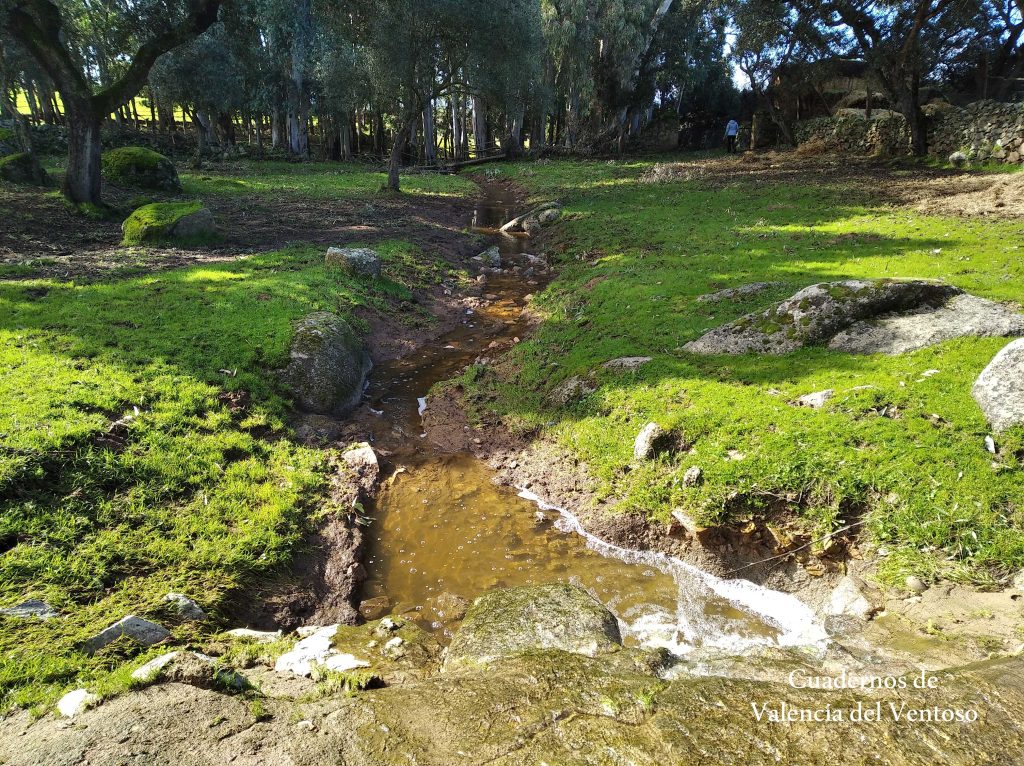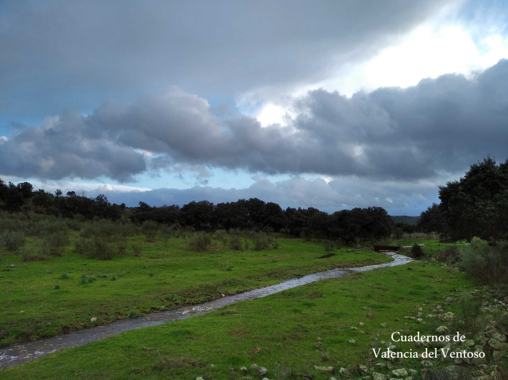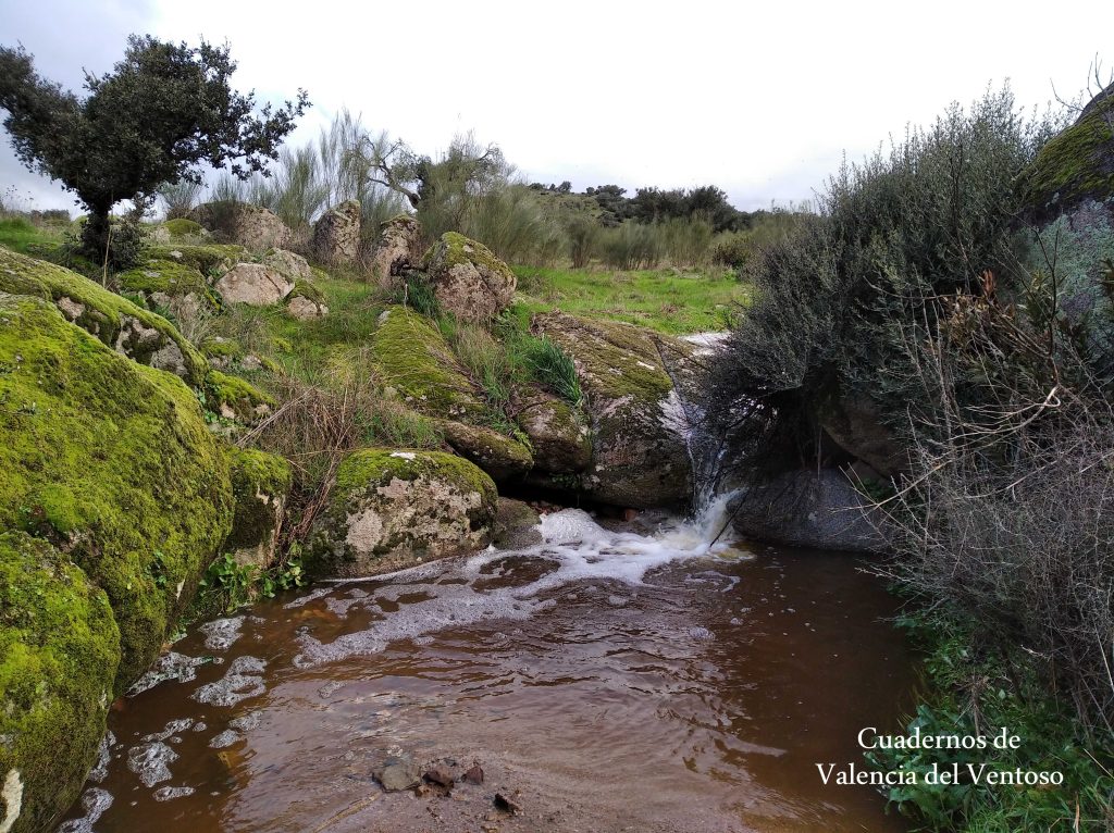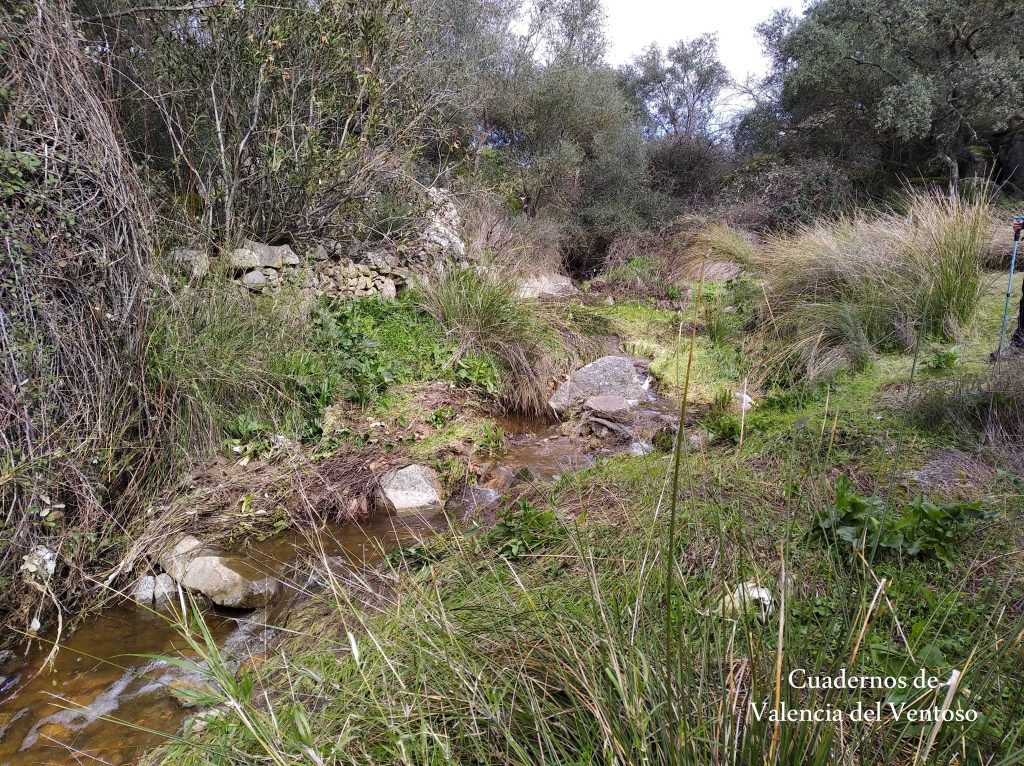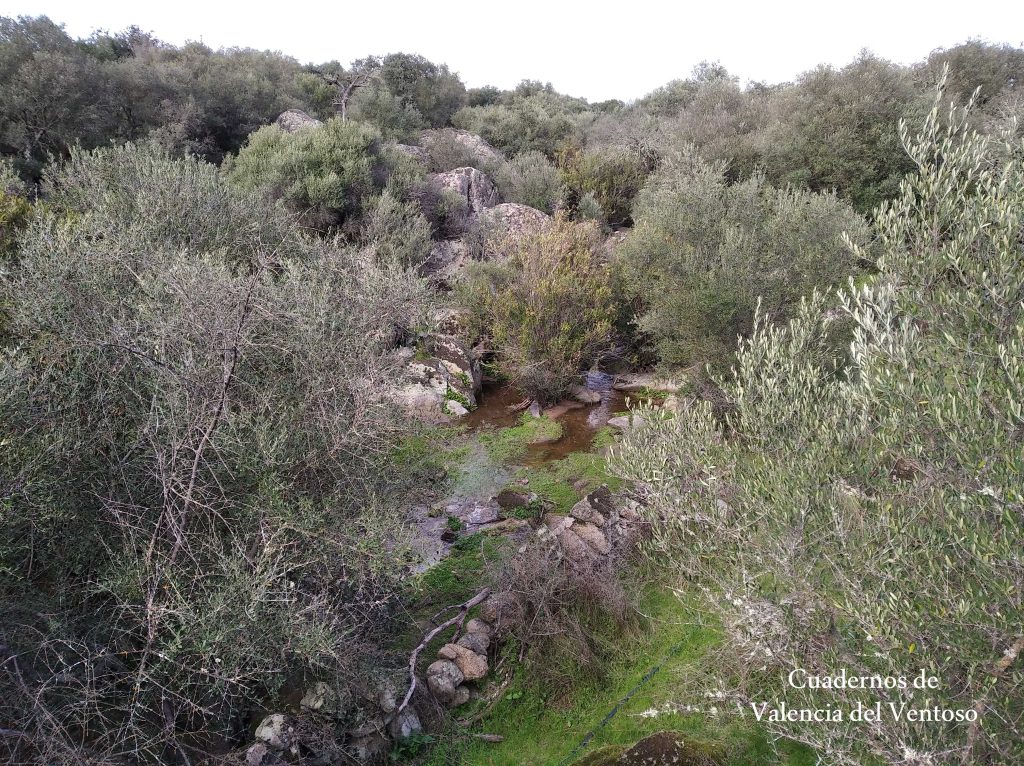 El arroyo, ya formado, trascurre de una forma placida por la dehesa, entre el territorio del Tiñoso y el de Doña Elvira.