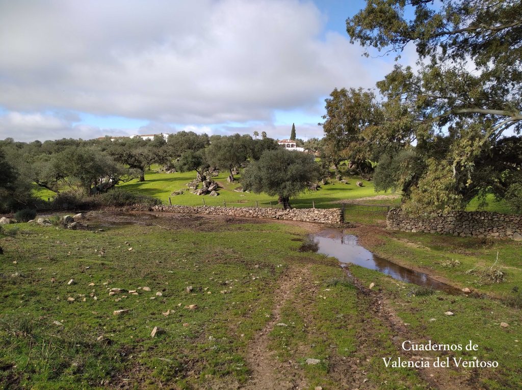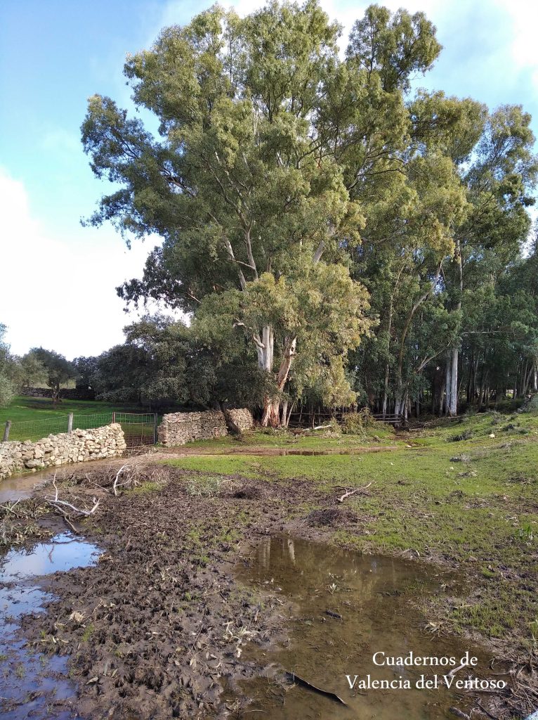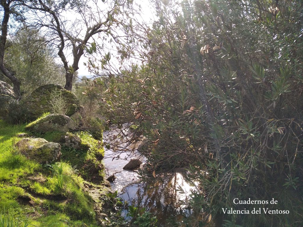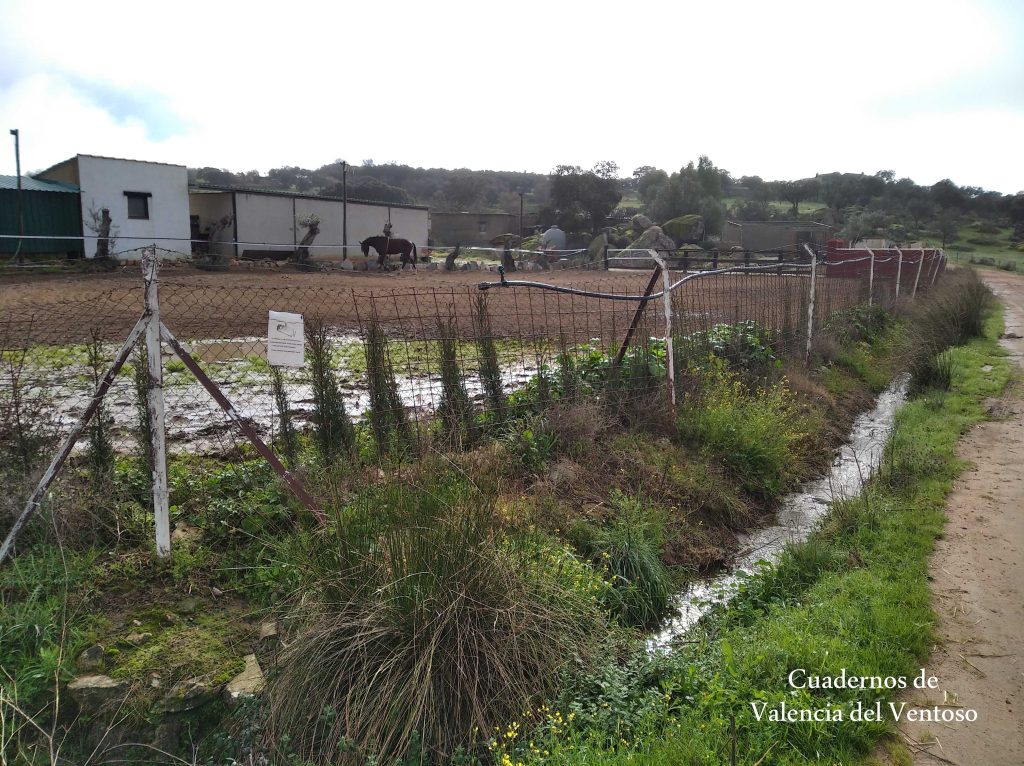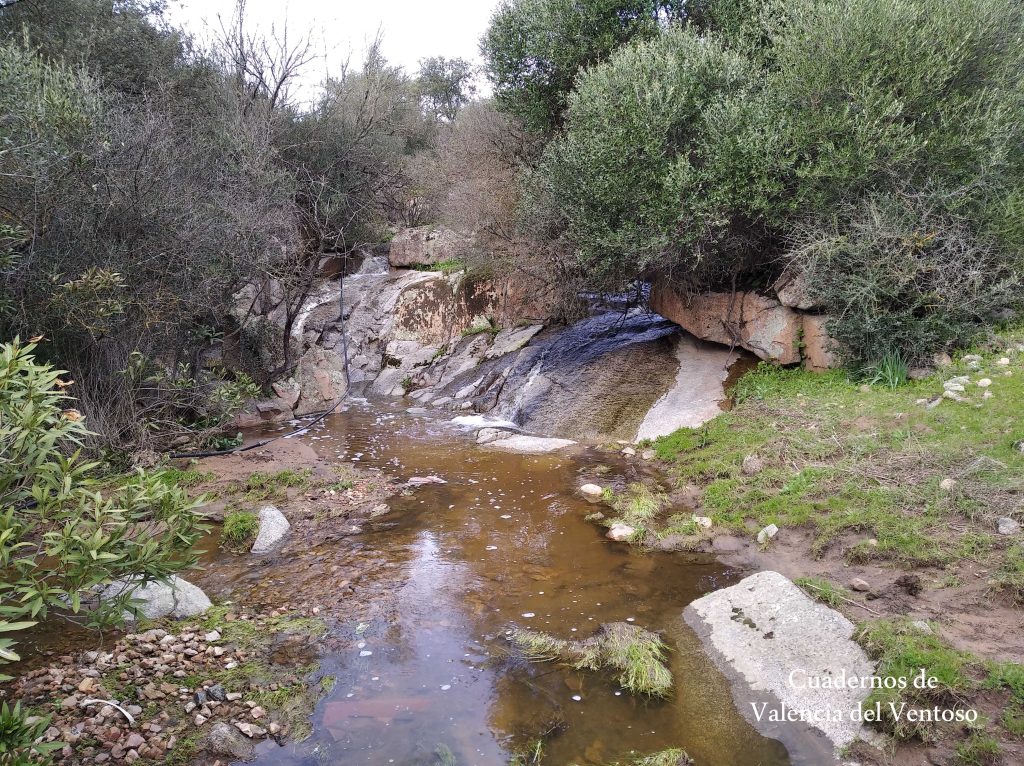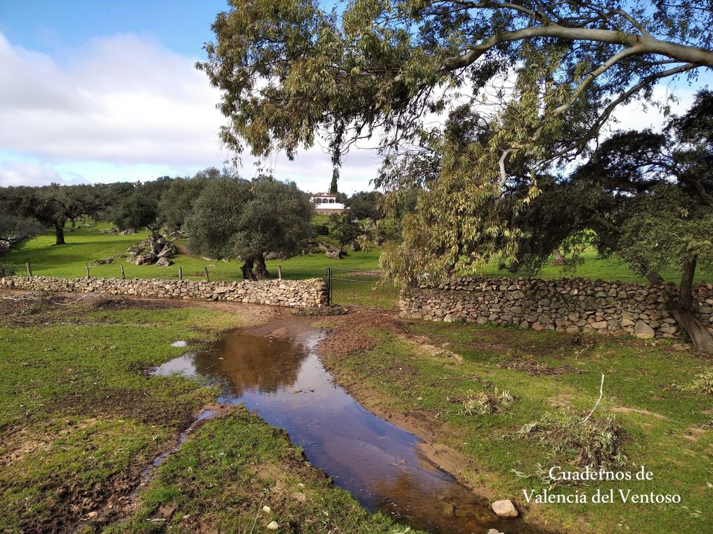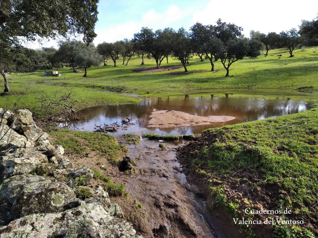 El arroyo, ya formado, trascurre de una forma placida por la dehesa, entre el territorio del Tiñoso y el de Doña Elvira.