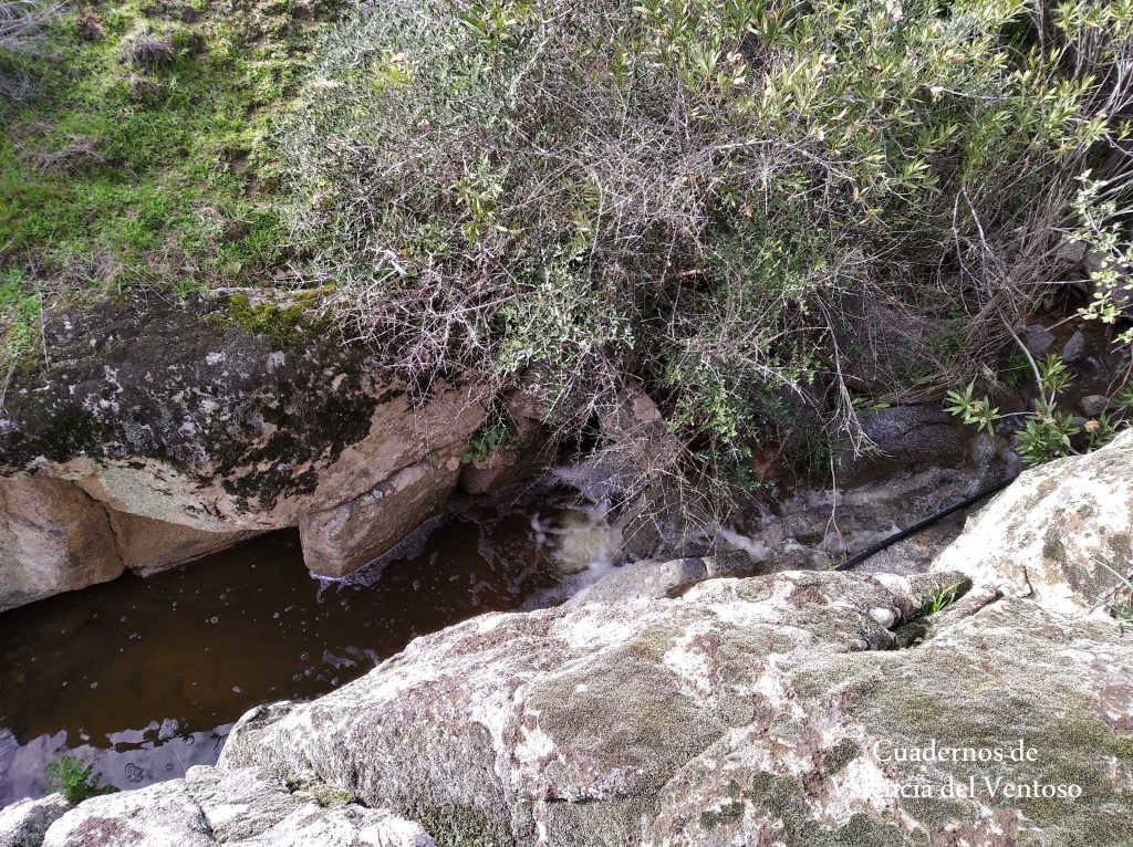 En esta zona rocosa, el arroyo de la Cueva de la Mora recibe las aguas del pequeño arroyo que viene de la zona alta del Tiñoso.