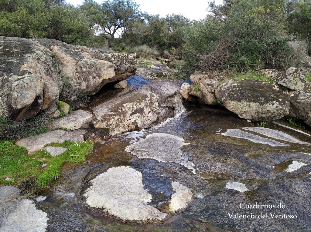 Después de salvar este segundo tramo, entre la zona granítica, el arroyo se desliza por terreno más suave hacia el Camino del Torno, donde después de saltarlo recorre sus últimos metros hasta desembocar en el Ardila, al final de la que denominamos Alameda de piedra, donde destaca entre todas las formaciones rocosas, el menhir del Lagarto.