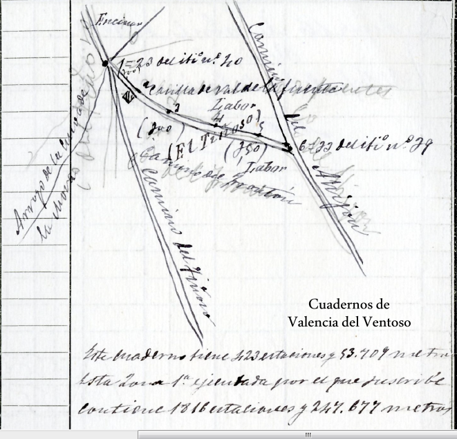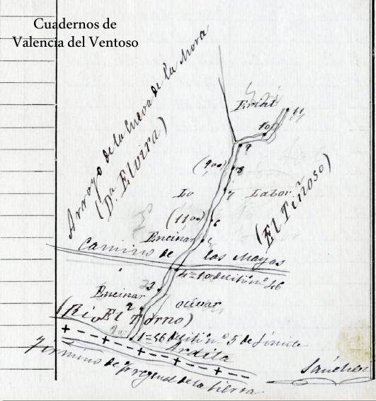 Os dejamos algunos detalles de cómo el topógrafo plasmaba en sus Cuadernos de Campo, hace 127 años, el desarrollo del arroyo de la Cueva de la Mora.